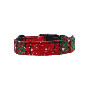 Rankų darbo antkaklis šuniui | Kalėdinis tartanas žalia-raudona | Plotis 25-40 mm
