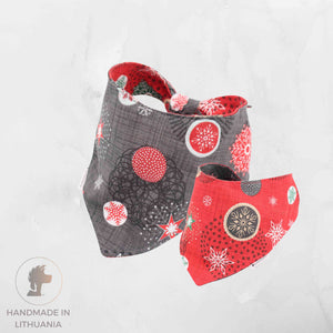 Rankų darbo bandana šuniui | Užrišama | Dviejų pusių | Kalėdiniai Ornamentai